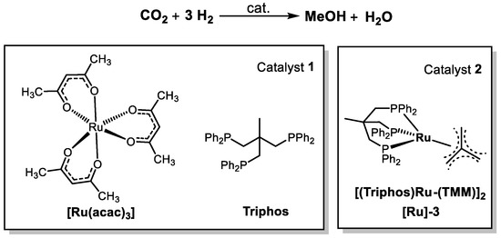 - Schieweck, B.G.; Juerling-Will, P.; Klankermayer, J. Structurally Versatile Ligand System for the Ruthenium Catalyzed One-Pot Hydrogenation of CO2 to Methanol. ACS Catal. 2020, 10, 3890–3894. [Google Scholar] [CrossRef]