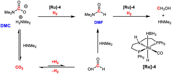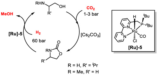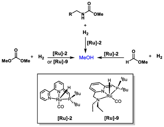 - Rezayee, N.M.; Huff, C.A.; Sanford, M.S. Tandem Amine and Ruthenium-Catalyzed Hydrogenation of CO2 to Methanol. J. Am. Chem. Soc. 2015, 137, 1028–1031. [Google Scholar] [CrossRef] [PubMed]