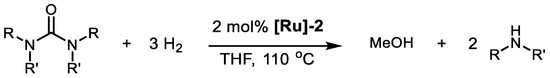 | [Ru]-2 | Urea | 100 | 13.6 | THF | 72 | 202 | [56] |