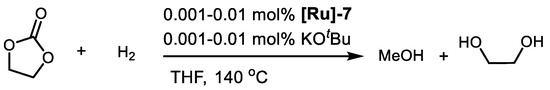| [Ru]-7 | Ethylene carbonate | 140 | 60 | THF | 48 | 87,000 | [57] |