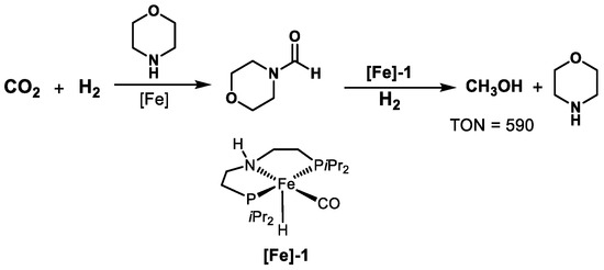 | [Fe]-1 | Morpholine | 120 | 69 | Dioxane | 16 | 590 | [68] |