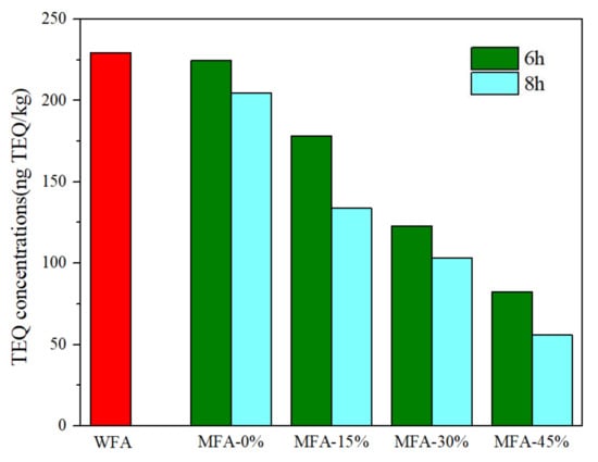 TEQ concentrations of the MC-treated fly ash.
