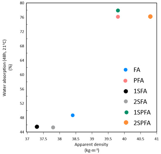 | Sample | Apparent Density (kg⋅m−3) | Dimensional Stability (Δl, 48 h, 70 °C) (%) | Loss in Mass (Δm, 48 h, 70 °C) (%) | Water Absorption (48 h, 21 °C) (%) |