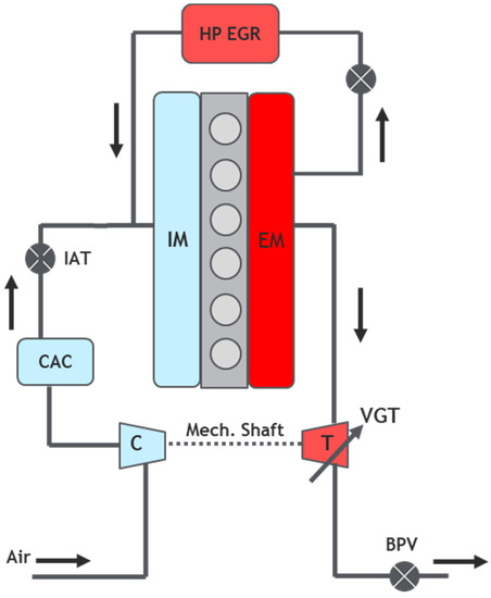 - Gehrke, S.; Kovacs, D.; Eilts, P.; Rempel, A.; Eckert, P. Investigation of VVA-Based Exhaust Management Strategies by Means of a HD Single Cylinder Research Engine and Rapid Prototyping Systems. SAE Int. J. Commer. Veh. 2013, 6, 47–61. [Google Scholar] [CrossRef]