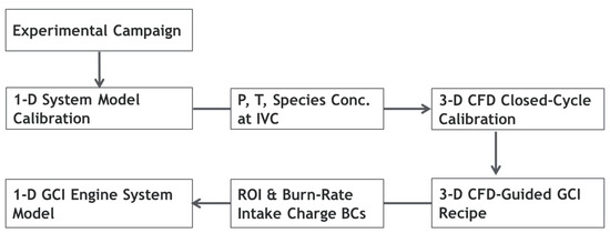 As discussed, the 3-D CFD GCI combustion model and the 1-D engine model were close-coupled in this investigation, with the outline shown in Figure 5.