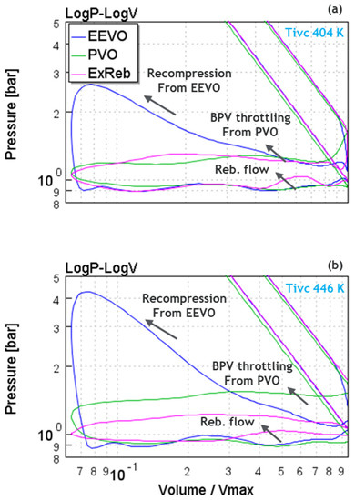 All the three VVA strategies resulted in Tivc increase via adequate trapping of the int.EGR portion. Table 5 shows the valve event variability and the BPV positions for the EEVO, PVO, and ExReb strategies that delivered the Tivc levels of 404, 412, and 446 K.