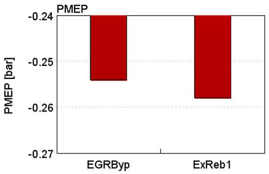 For EEVO, with the increasing trapped int.EGR via advancing of the EV event, the BPV became increasingly relaxed to reduce the external EGR (ext.EGR) portion and maintain the total RSG mass unchanged. The turbine rack remained fully open. From Table 5, the PVO strategy was exercised by retarding the EV and advancing the IV by the 30 CAD and the 15 CAD, respectively. When implementing PVO, the BPV was increasingly throttled (from 67% to 49% position), while the HP EGR valve was proportionally closed to increase the int.EGR portion and maintain the desired total RSG mass for each Tivc level.