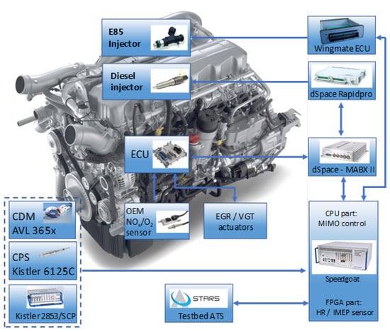Overview of the hardware architecture of the implemented RCCI engine control system. Reprinted from [] with permission. ©SAE International 2019.