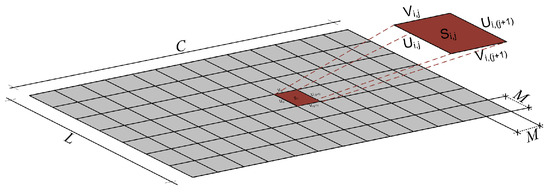 This stage consists of a regular discretization of a given rectangular area to be stratified, dividing it into smaller subareas of [m], as illustrated in Figure 7. Each subarea may be defined in the L direction, by the edges and in the C direction, by the edges.