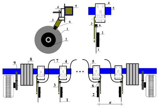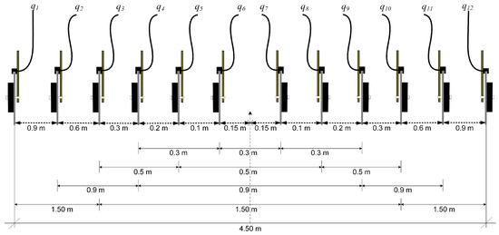 If the blades distances are different from those presented in Figure 10, another distribution of the blades must be used, taking into account the distances a between the electrodes that are active during the measurements. Depending on the number of disc blades and the distances a, the toolbar will have a length equivalent to larger than the largest value of a. As the depth of the soil stratification is closely related to the distance a between disc blades, the longer the toolbar and hence the distance a, the deepest will be the stratification.