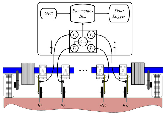 The switching of the 4 terrometer terminals in relation to the 12 electrodes is performed electronically. The Global Navigation Satellite System (GNSS) with distance-compatible precision M must provide the location of the reading, and the data are stored in the Data Logger. The data gathering is carried out when the farm vehicle is in motion and the frequency of this gathering is related to the value of M, the lower this value, the lower the speed of the farm vehicle that drags the device through the ground.