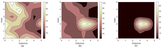 Since the device is dragged across the soil, one must specify the distance interval from one reading to the next. In accordance to the method proposed in Section 2, this distance between readings is M, however, M may assume any value above m. Hence, the subareas will always be and M is the distance that the farm vehicle moves between readings.