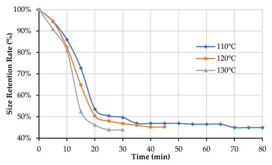 3.4. Effects of Temperature on Size Retention Rate and Relative Porosity
