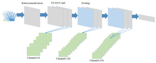 Because ST-GCN shares weights on different nodes, it is very important to keep the input data ratio consistent on different nodes. In the experiment, the data are regularized and input into batch normalization. The ST-GCN model consists of nine layers of spatio-temporal map convolution. The first 3 layers output 64 channels, the middle 3 layers output 128 channels, and the last 3 layers output 256 channels. There are nine temporal convolution kernels. In each ST-GCN, residual linking is used, shedding is used for feature regularization, and half of the neurons are shed. The temporal convolution layers of the fourth and seventh layers are set as polarization layers. Finally, the outputs of 256 channels are collected and classified globally by SoftMax. It is optimized by SGD. The learning rate is set to 0.01 and reduced by 0.01 every 10 epoch iterations.