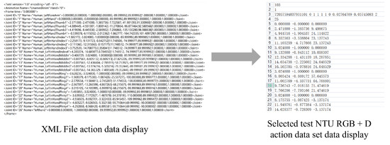 Because the NTU RGB + D action recognition dataset is a dataset trained with data features, which is consistent with the idea of extracting hand actions features and saving them with data described above, and the NTU RGB + D action recognition dataset has a huge basic database, the data of the data glove stored in the XML file above are integrated into the data of the NTU RGB + D dataset.