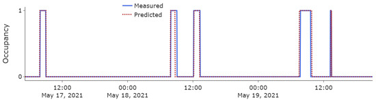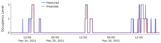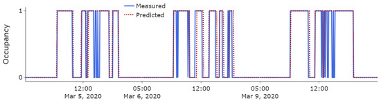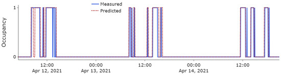 The rained source model showed an MCC score of 85% and the resulting comparison of predicted and measured occupancy detection can be seen in Figure 5.