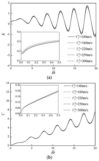 In addition, the effect of the shear wave velocity of sediment on the vertical dynamic impedance of rock-socketed pile is also investigated. The thickness, density, Poisson’s ratio, viscous damping coefficient and shear wave velocity of sediment are 50 mm, 1700 , 0.4, 1000 and , respectively.