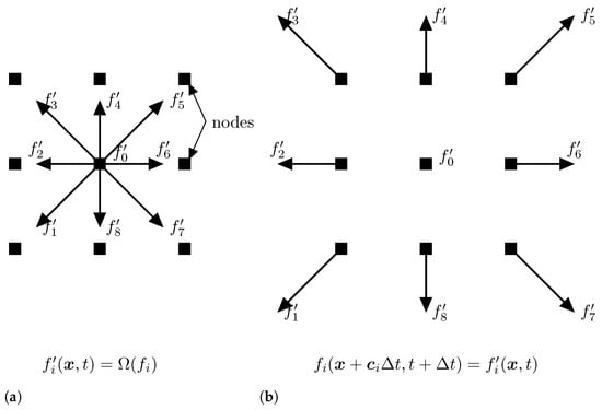 LBM iteration progress. (a) Collide step. (b) Streaming step.