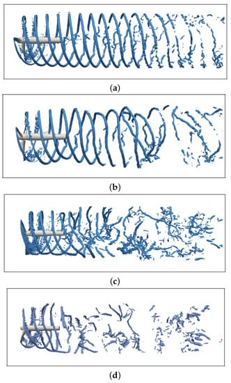 - Jeong, J.; Hussain, F. On the identification of vortex. J. Fluid Mech. 1995, 285, 69–94. [Google Scholar] [CrossRef]