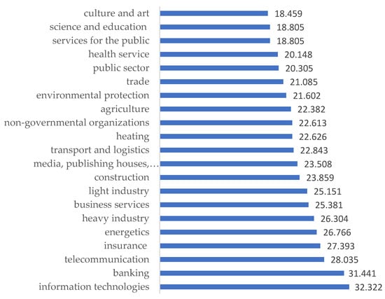 It may be assumed that employees of the analysed sectors with the lowest salaries would be interested in solutions offered under the concept of Employee Financial Wellness Programs; however, the indicated factors suggest that it is unlikely, at least in the short-term perspective. On the other hand, the highest salaries are earned in Poland by employees of the following sectors: information technologies, banking and telecommunication (Figure 3). These sectors were also excluded from the study due to the fact that it is originally assumed that the programs in question are targeted at low- and middle-income earners. Employees in the highest-earning industries are therefore not the target group for financial wellness, and their high level of salaries makes the services that are offered under EFMPs accessible to them on the market, as they do not represent a financial barrier and burden on the household budget. Thus, the level of income received by employees in the energy sector in Poland, in addition to the other arguments indicated in Materials and Methods, argues in favour of conducting survey research on EFWPs specifically at these companies.