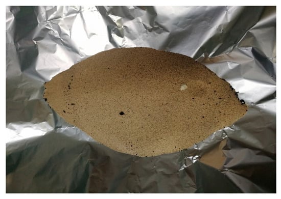 Moisture fractions of the coarsely ground disposable masks were quantified by measuring the samples’ mass variation through a drying treatment using an oven (model MPIM factory Oven SL, MPIM srl, Sambuceto, Italy), keeping the temperature at 105 °C overnight according to EN 15414-3:2011 [] standard indications, as shown in Figure 1. Due to the temperature reached in the oven, the sterilization operation took place simultaneously with this first analysis.