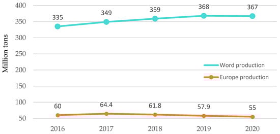 Worldwide and European development of plastics production. Made based on [3].