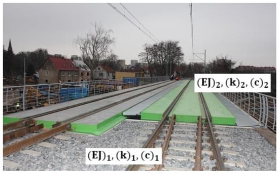 The threshold effect has a negative impact not only on the railway surface, but on the object that is exposed to excessive loads and vibrations, as well [,,]. It is assumed that the difference in track stiffness on and off the object should not be more than 30%. The transition from a ballast to a ballastless surface is shown in Figure 1.