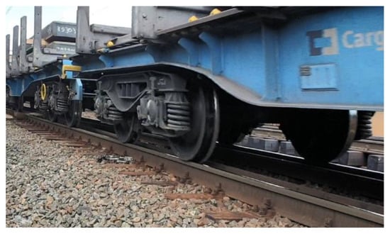 Particular attention should be paid to the coefficient of effective stiffening of the rail, which reflects the method of fastening the rail in various structural solutions of the railway surface. It was introduced after defining the phenomenon that the effective bending stiffness of the rail is different for ballast and ballastless surfaces []. In places where there is a ballast surface, its value is assumed as 1.00; in places where there is a ballastless surface, the value of 1.30 and for sheath rail systems (for example, the ERS system), where the rail is immersed in an elastic mass that limits its freedom of bending, the value of this coefficient is equal to 1.50. It should be noted that these are proprietary values, verified during the in situ research, but may require clarification and detailing with more measurements and analyses.