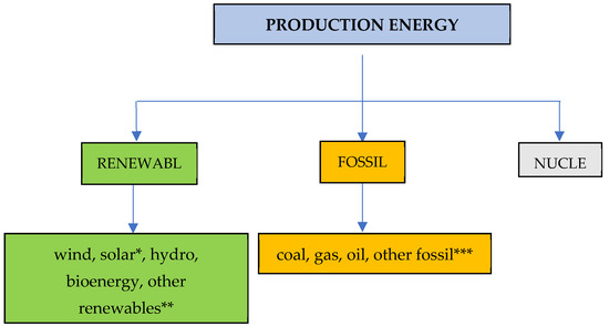 The structure of energy production was defined according to several groups described in Figure 1. Electricity production data has been aggregated into six generation types. Data was collected using EUROSTAT sources, from Embrer’s website and from national sources.