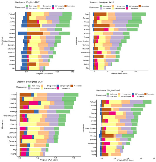 4.2. Assess the Energetic Sustainability of the Chosen European Countries-Multiobjective Decision Analysis (MODA)