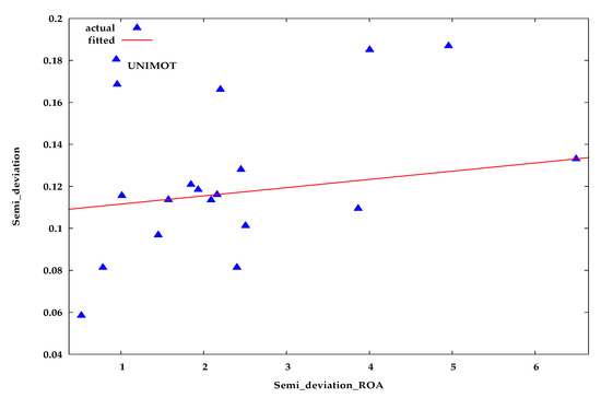 Quantile regression line for semi-deviation of returns vs. semi-deviation for ROA ().
