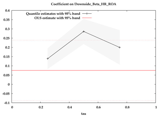 Quantile regression line for downside beta coefficient vs. downside beta coefficient for ROA ().