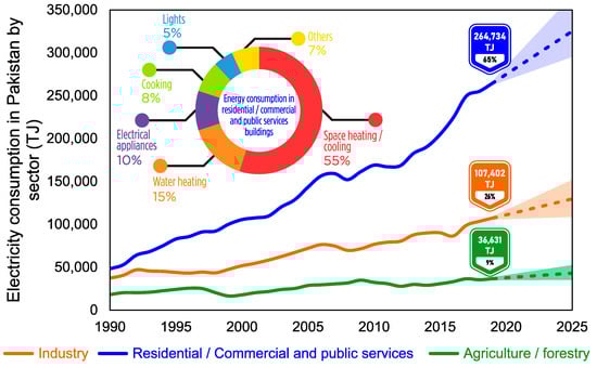 Energy consumption in Pakistan by sector and energy consumption in buildings, reproduced from [].