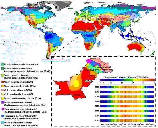 Köppen climate conditions of Pakistan and a temperature profile for Multan, Pakistan, reproduced from [,].