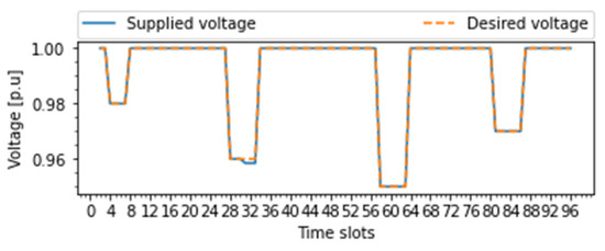 Step 2: At time slot t, the DC bus input voltage is checked against its nominal voltage reference to consider for carrying out a voltage-based DR program. Equation (30) is applied in this step to make a control action related to voltage-based DR.