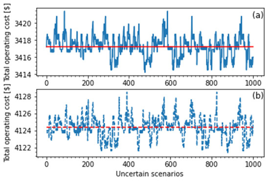 where and are total critical and controllable load magnitude, respectively. is the DC–DC/AC inverter efficiency. is a continuous random variable as in [24] to denote the percentage of controllable load reduction. At a certain time, t = k; if no demand response is used, = 0. In addition, the controllable load reduction quantity does not exceed a certain limitation affecting the comfort levels of loads. This constraint can be expressed as
