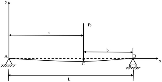 According to the related theory of material mechanics [29], the force relationship shown in Figure 5, the bending moment equations of AC and CB are: