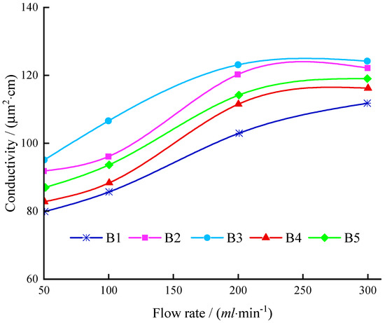 Effect of fiber addition on conductivity under different flow rate conditions.