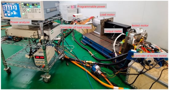 To further verify the effectiveness and feasibility of the proposed control strategy for the PMSM drive system integrated bidirectional DC/DC, an experimental platform is built, as shown in Figure 10. The motor used in the experiment has a deceleration mechanism, and the deceleration ratio is 8.33. The specific parameters are shown in Table 2.