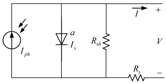 Equation (1) is a transcendental function, where I is the output current and V is the output voltage. Iph, Is, a, Rs and Rsh are five parameters that need to be extracted, where Iph is the photovoltaic current source, Is is the reverse saturation current of the diode, a is the ideality factor of the diode, Rs is the series resistance, and Rsh is the parallel resistance.