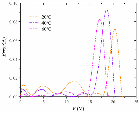 Absolute errors of I-V characteristics between symbols and lines in Figure 7.