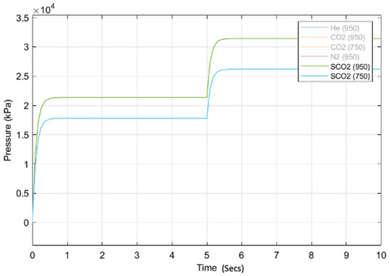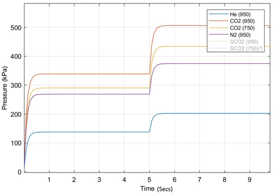 Control-valve response times (secs), with dynamic response and stability of pressures (kPa) for the various working fluids. Note: SCO2 pressures are much higher and are in Figure 7.