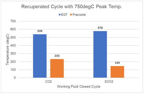 Turbine-exhaust-gas temperature (EGT) and precooler temperature for a core-outlet Temperature (COT) of 750 °C.