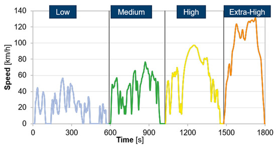 Standard driving cycles are the speed versus time profiles that aim to mimic real-world vehicle operation [41]. The Worldwide Harmonized Light Vehicles Test Cycle (WLTC) was developed to provide better laboratory estimates for real-world vehicle emissions and fuel consumption for LDVs [42].