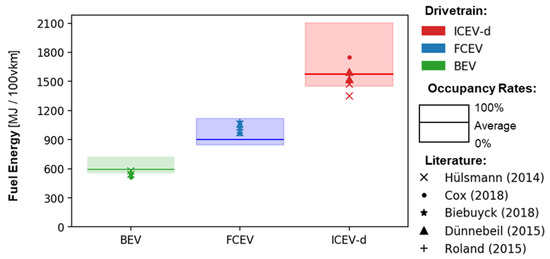 Driving conditions were the most important criterion when comparing the vehicle energy demand across drivetrains. On the other hand, occupancy rates were the most critical indicator when comparing energy demand between the different modes.