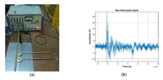 - Huiskamp, T.; Beckers, F.J.C.M.; van Heesch, E.J.M.; Pemen, A.J.M. B-Dot and D-Dot Sensors for (Sub)Nanosecond High-Voltage and High-Current Pulse Measurements. IEEE Sens. J. 2016, 16, 3792–3801. [Google Scholar] [CrossRef] [Green Version]