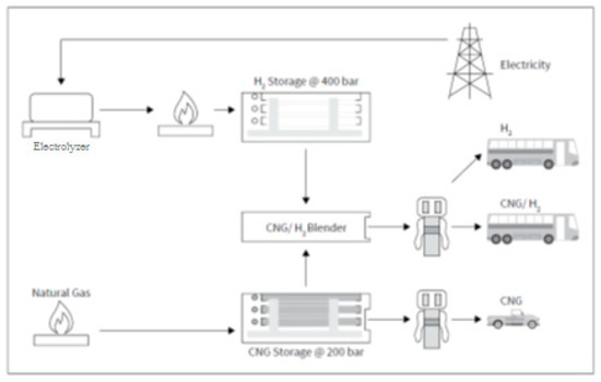 Scheme of an integrated filling station for compressed natural gas and methane–hydrogen mixtures (Reprinted from ref. [32]).