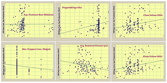 Correlations between well productivity and field treatment data from Mohaghegh (2019).