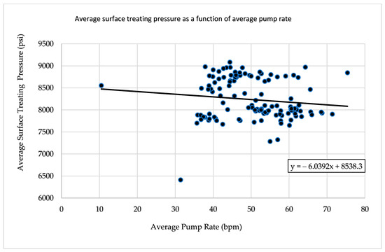 Increased pump rate creates more friction along the wellbore as well as the fracture face. The average pump rate will most likely have an effect on treatment costs as service companies generally charge for pump time. Therefore, longer pump times will increase treatment costs. The assumption is that an increase in average pump rate will increase the average STP.
