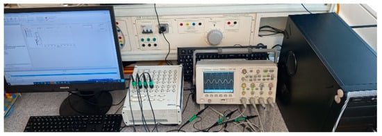 The developed single-phase charging and control system of the MMC-EB was validated using the hardware-in-the-loop (HIL) real-time MicroLabBox (dSPACE). The MicroLabBox is equipped with a dual core real-time processor that can be utilised for rapid prototyping of control systems. It also can be used to emulate, with high fidelity, the performance of electrical systems in real time. Figure 16 shows the MicroLabBox that is used to emulate an MMC-EB with 56 SMs per arm in real time. Due to the high number of PWM outputs that are required to switch on/off the converter switches, i.e., 336 digital outputs, the control system is integrated into the same platform. Since the emulated HIL converter system is executed in the real-time clock, the AOs of the MicroLabBox (HIL host) are used to capture the real-time changes in the system. An oscilloscope is connected to these AOs to measure the variation in the current and voltage waveforms during charging.